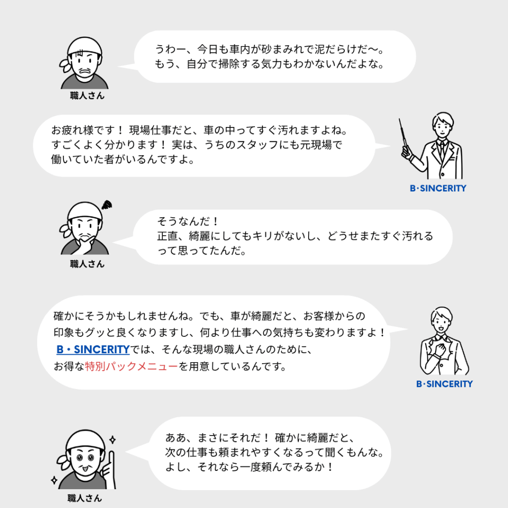 そんな職人さんを現場まで運んだり、道具や材料を運ぶため、車内はどうしても汚れてしまいますよね。